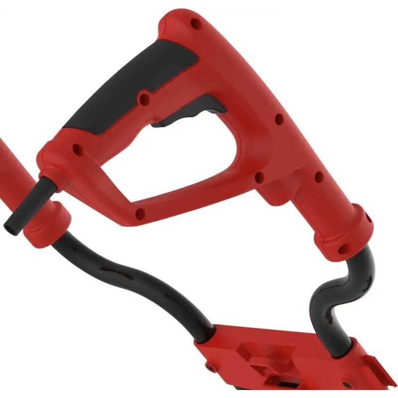 Modellen har ergonomisk formet styring og kabelavlastning i ledningen.