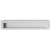 Avlang aluminiumsfarget skålegrep i aluminium, hvor endekappene er i sinklegering. Fordypningen i grepet gir et bedre grep.