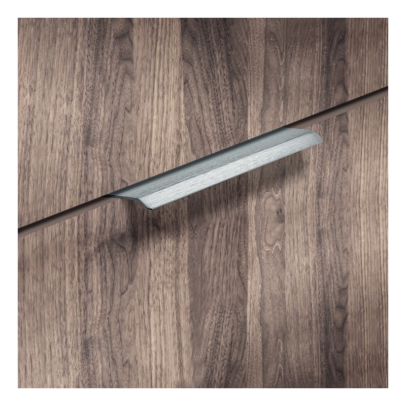 Enkelt og stilrent kantgrep i matt hvit aluminium. Denne modellen har en lett buet front for et bedre grep.