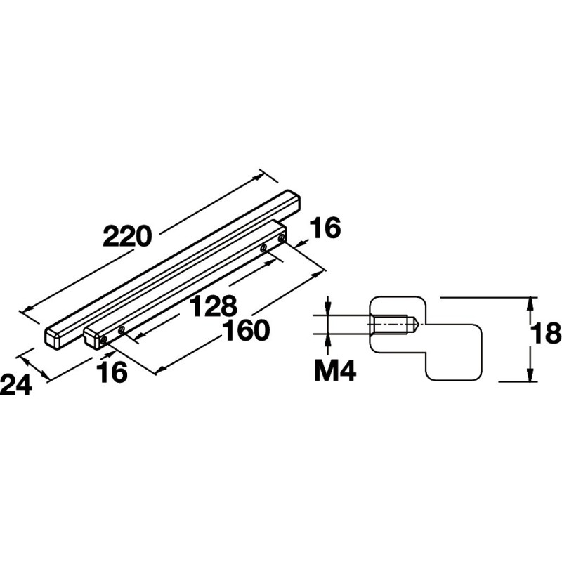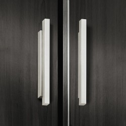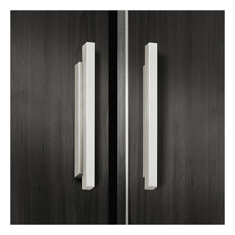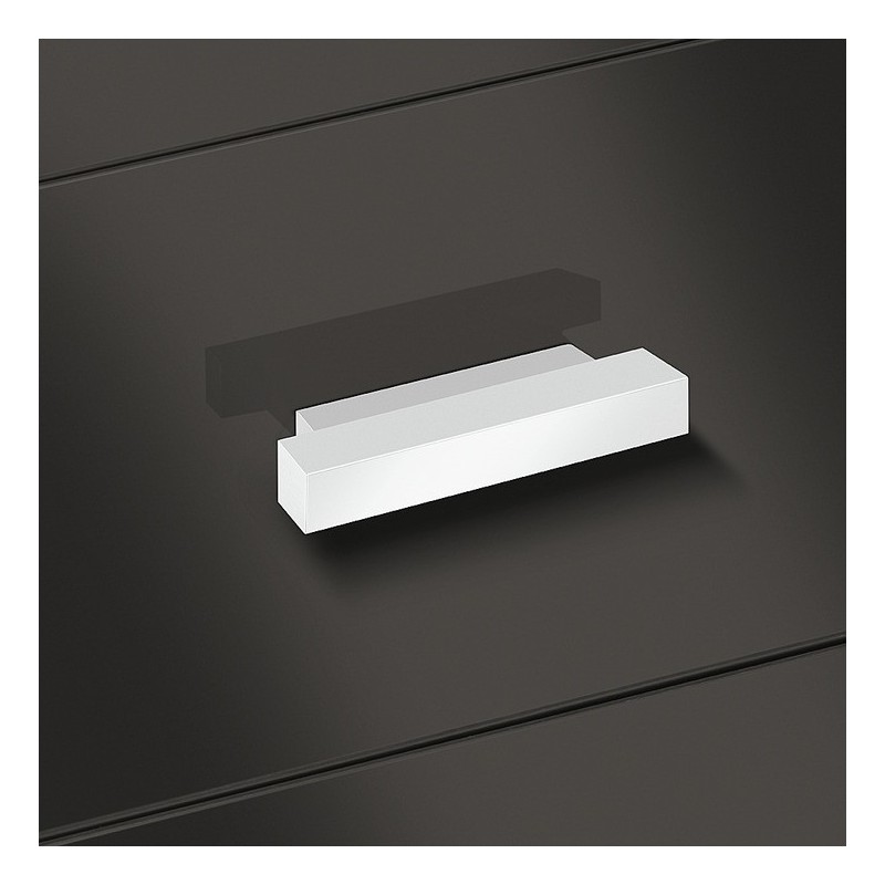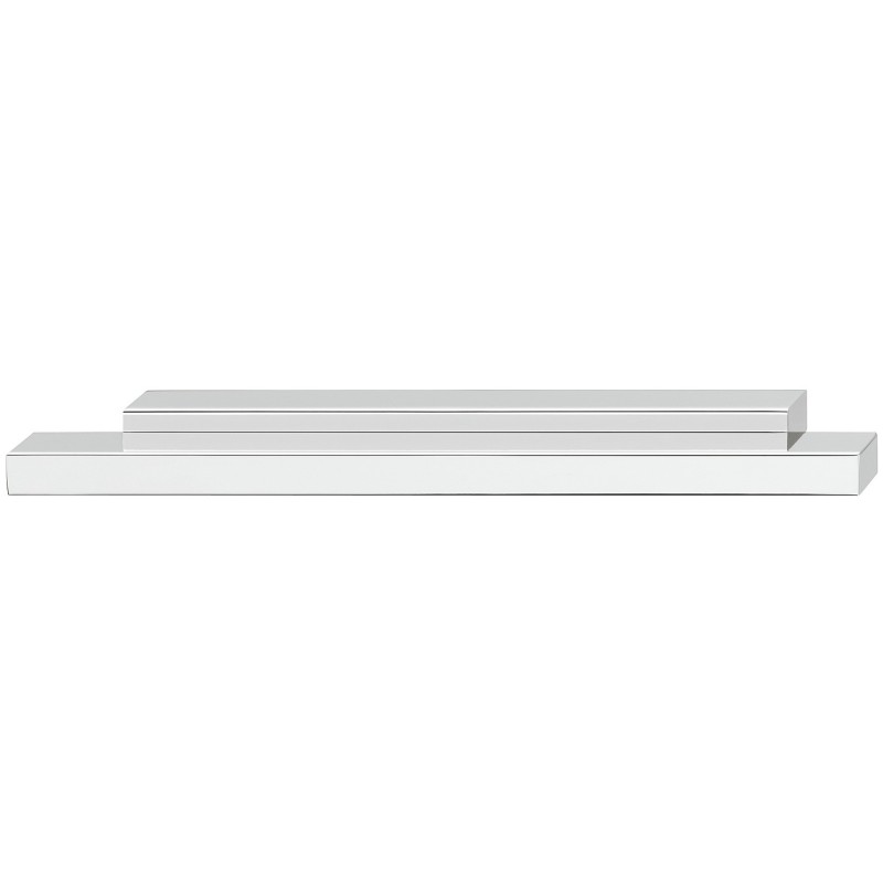 Gripelist i forkrommet polert aluminium. Grepet har et unikt kantet design bestående av 2 rektangler oppå hverandre.