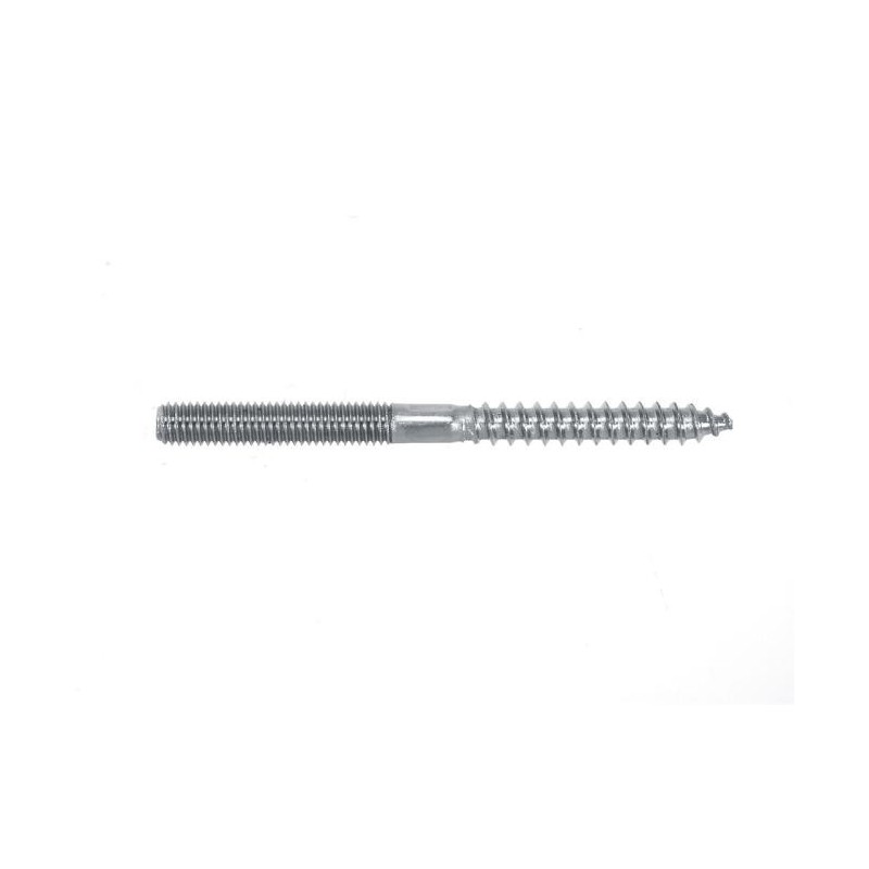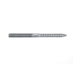 Ansatsskrue med metrisk M6 gevind i én ende og grov tre-gevind i den andre enden.