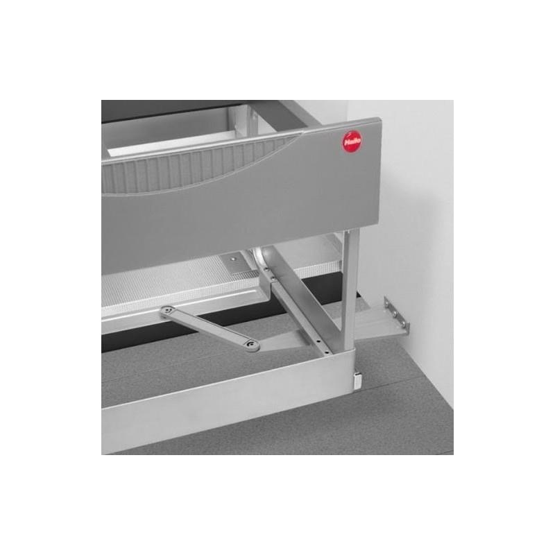 Denne modellen har medbringer, dvs. det kan monteres en arm på skapdøren som trekker søppelbøtten ut når døren åpnes.