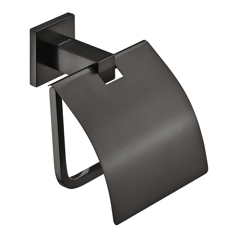 Moderne toalettpapirholder med hette i grafitt svart messing