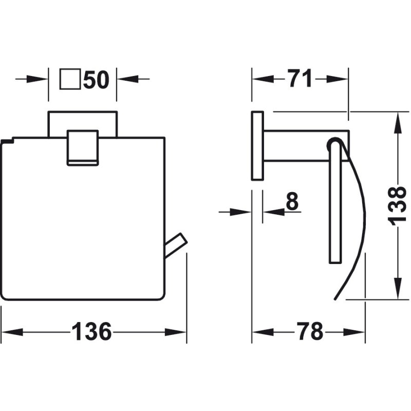 Moderne firkantet toalettpapirholder til oppheng på badet.