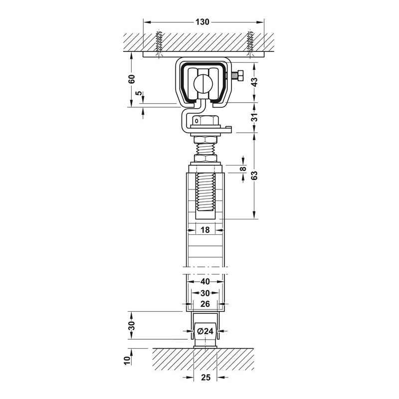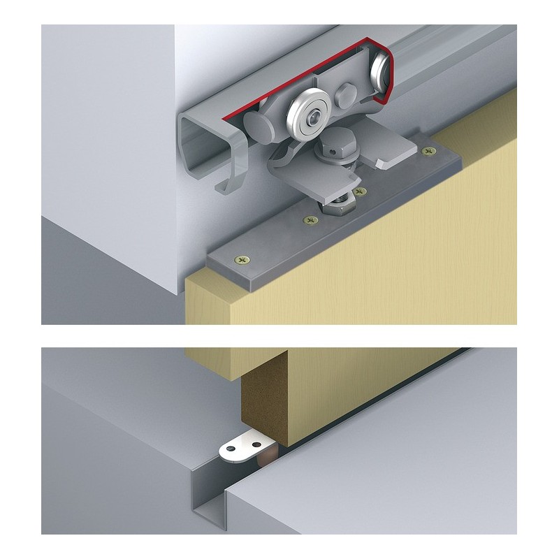Häfele Slido D-Line13 400-Q er et skydedørsbeslag for opp til 2 skydedører. Denne modellen er beregnet for tunge dører, da den har en bæreevne på helt opp til 400 kg.