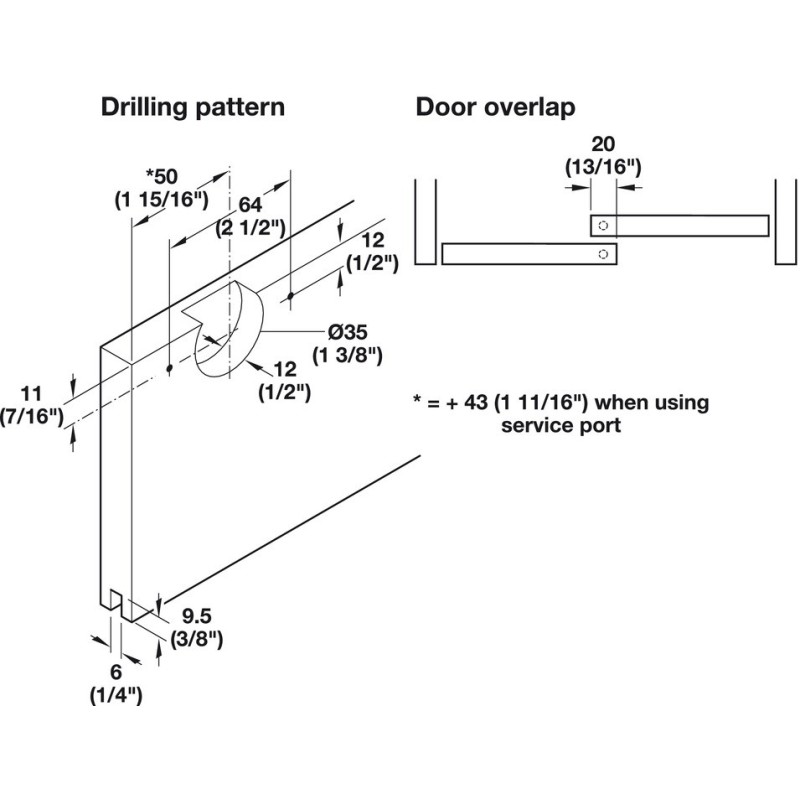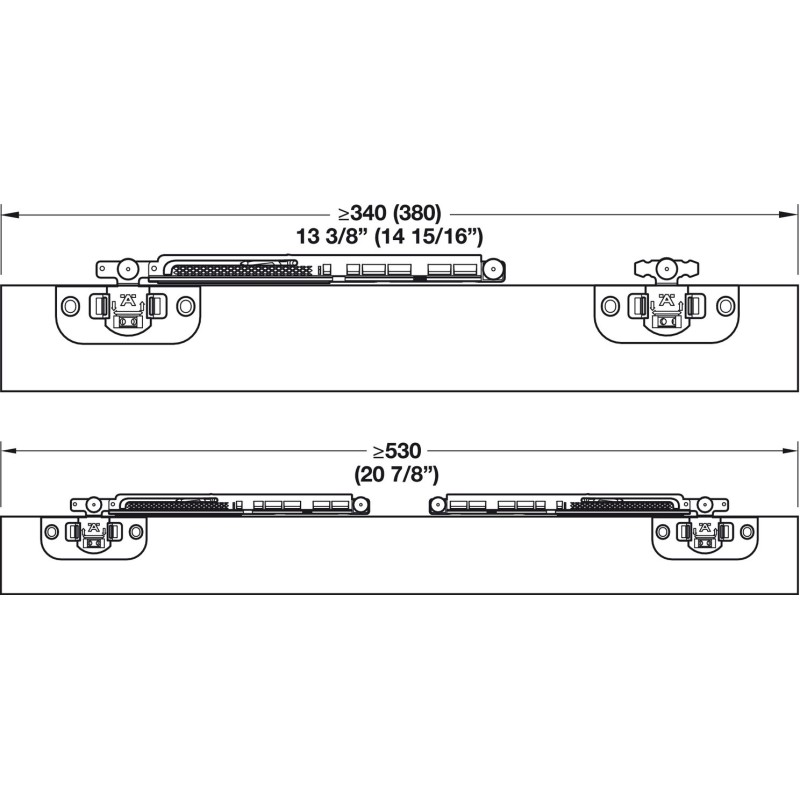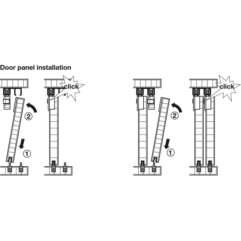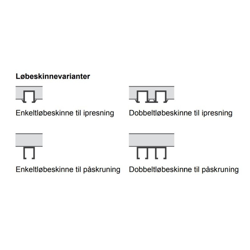 - 1 enkeltløbeskine: top (Ved 2 eller 3 låger skal der købes en dobbeltløbeskinne)