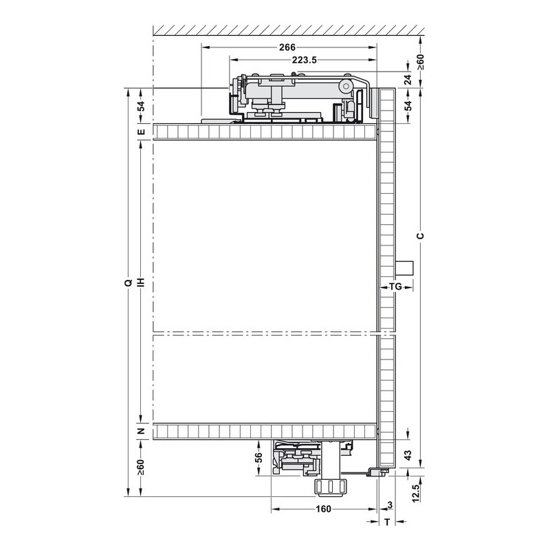 - Påskruet beslag foroven uden låge: Min. 266 mm