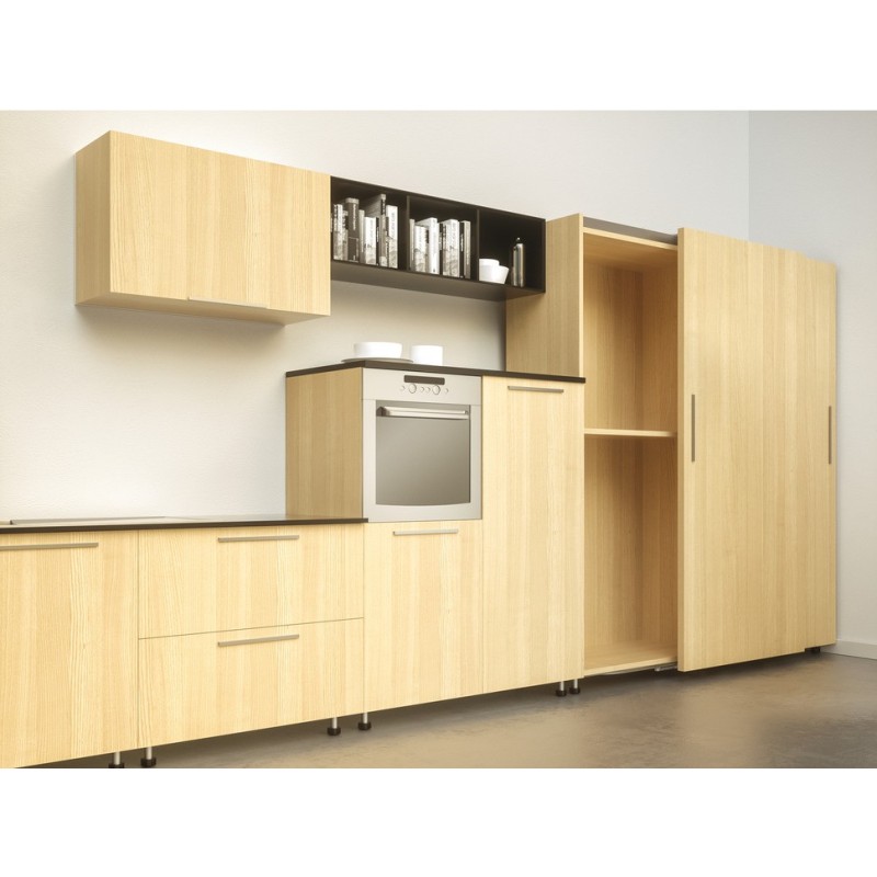 Denne model egner sig godt til køkkenskabe. Løbeskinnerne er med plads til sokkelsystemer, samt med fuldåbning af lågerne som giver god adgang til tingene på hylderne. Dette beslag er beregnet til 2 låger og har en bæreevne på 35 kg.