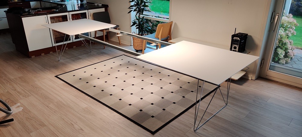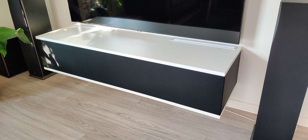 Komplett gjør-det-selv guide for det smarte TV-bordet, med uttrekk i topplaten som gir enkel tilgang til kablene bak