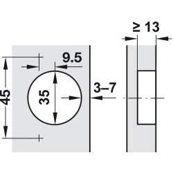 Herunder må du velge hvilken type hengsel du skal bruke. Typen av hengsel avgjør hvilken avstand montasjesplaten skal ha: