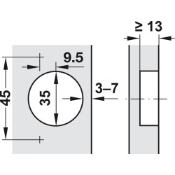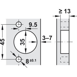 Dette hengselet finnes kun i 1 modell, og siden det sitter plan med døren, må det alltid velges en montasjeplate med avstand: 6 mm