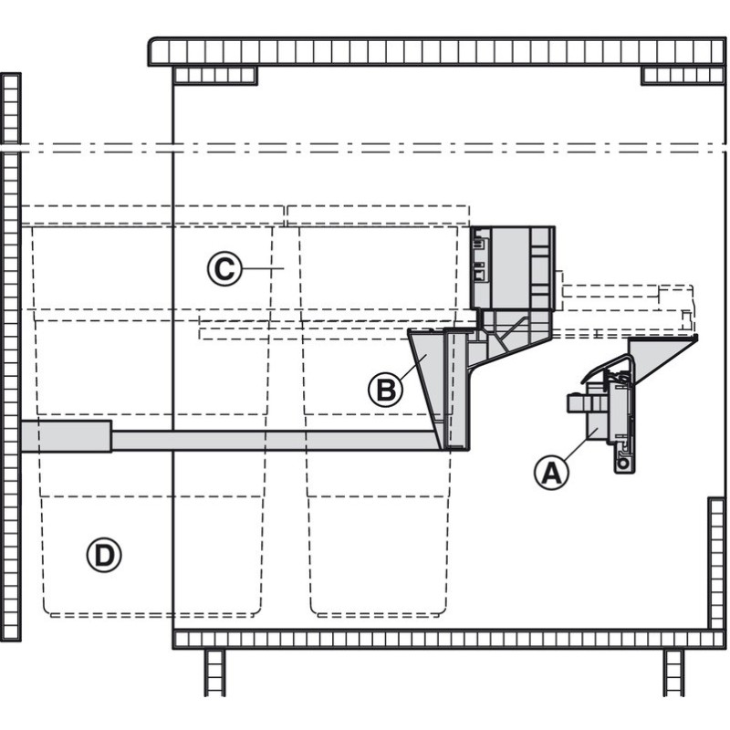 • Bruk: Til opphenging på Blum Tandembox sarghøyde 83 mm med blumotion (nominell lengde 500 mm + bæreevne 65 kg). For Blum Servo-Drive uno hengende avfallsløsning.