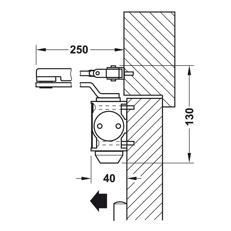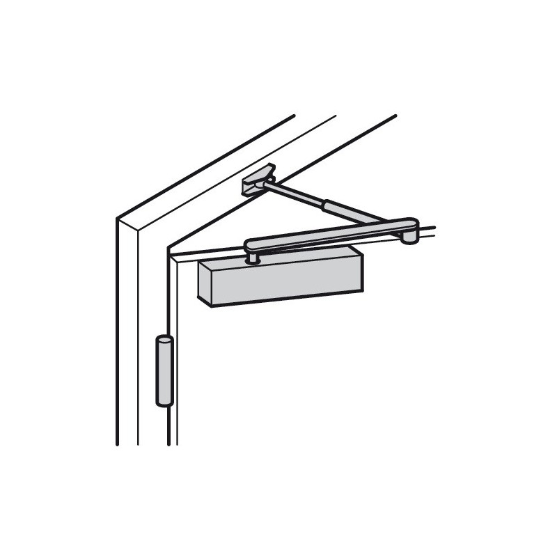 DCL 15 er med standard arm. Standard arm betyr at armen lukker døren automatisk. DCL 15 er testet og godkjent for brannporter.