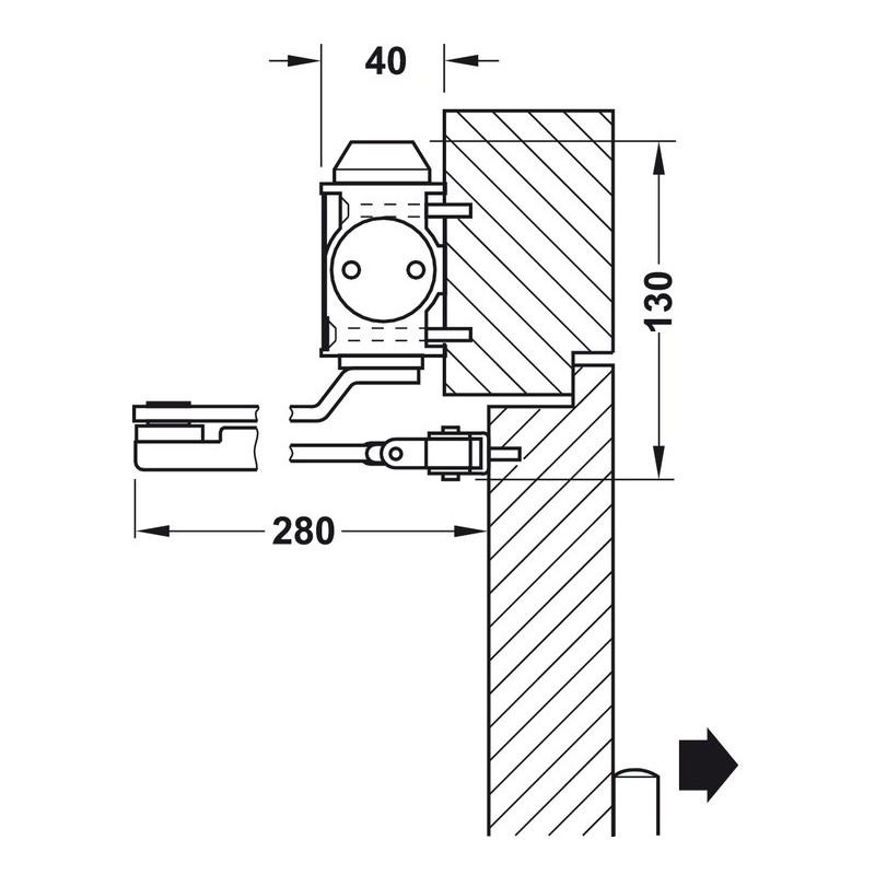 • Dørlukkeren med standard arm er egnet for brannporter, og dørlukkeren med holde arm er IKKE egnet for brannporter.