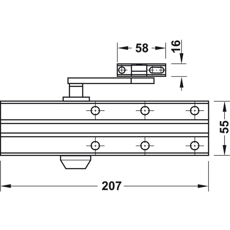 DCL 16 er med holde arm. Holde arm betyr at armen lukker døren automatisk, men kan også holde døren åpen hvis den settes i hak. Dette er smart hvis man ønsker døren åpen i lengre tid, når man f.eks. skal lufte ut eller når man løfter på tunge ting og ikke har noen frie hender.