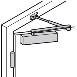 Standard arm betyr at armen lukker døren automatisk. Startec DCL 51 dørlukker med standard arm er testet og godkjent for brann-dører.