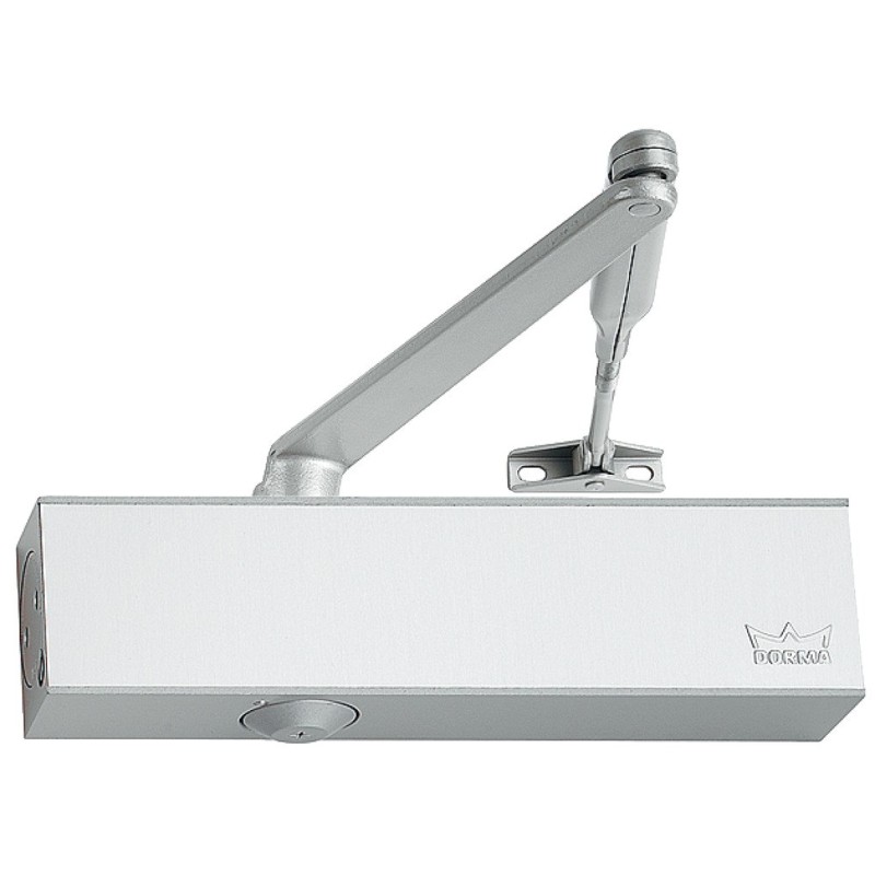Dorma TS 73 V dørlukker med standard arm - EN 2-4. Denne modellen kan fås i fargene sølv eller hvit.