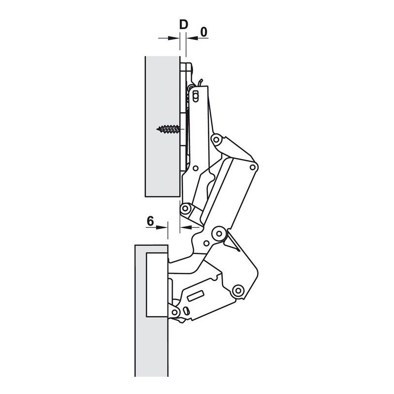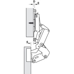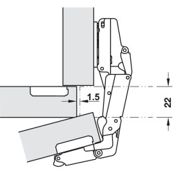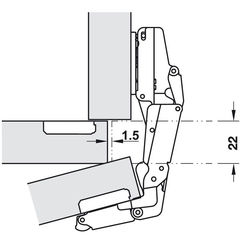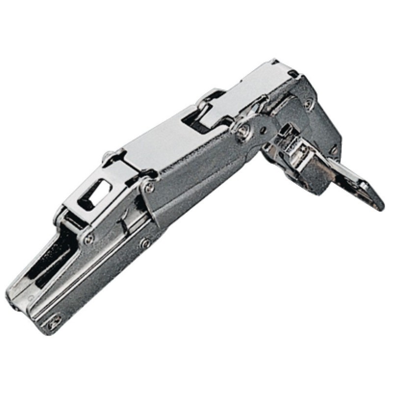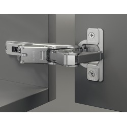 Häfele Duomatic kophengsel med en åpning på 155 grader brukes ofte når du har uttrekkshyller i skapet, som skal kunne gå uforhindret forbi døren.