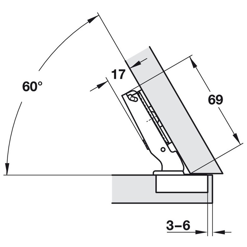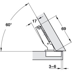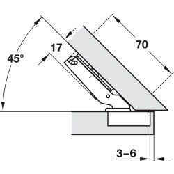 Häfele Duomatic kopphengsel med en åpning på 120 grader er et hengsel som kan brukes til vinklet dører mellom 30 og 45 grader.