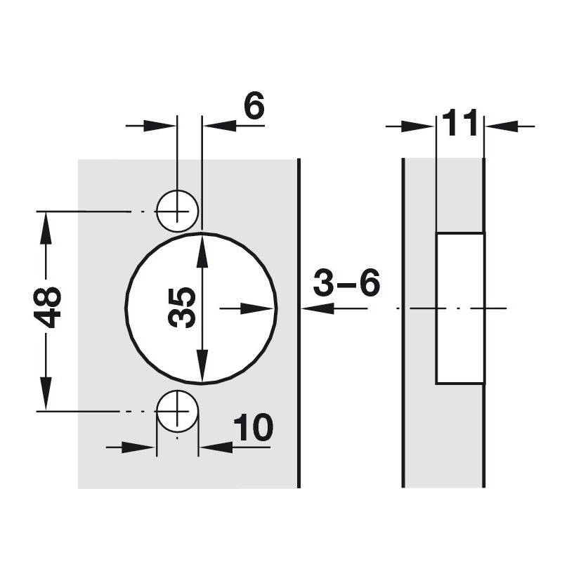 - Dybdejustering med Duomatic A monteringsplate: +2,8 mm