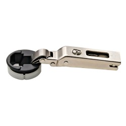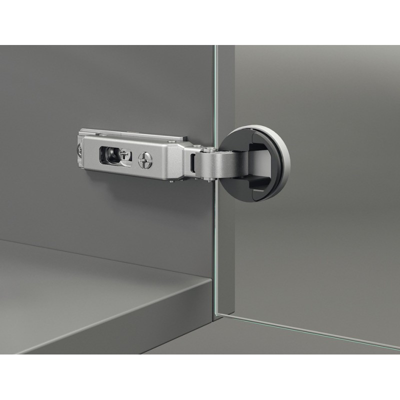 Häfele Duomatic med en åpning på 94 grader, til glassdører. Hengslet er for innpressing i 26 mm kopboring.