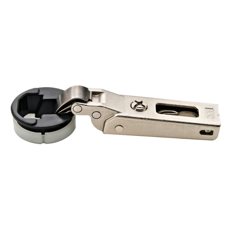 Denne hengslet har lukkeautomatik som gjør at det i lukket posisjon blir holdt inn mot skapet.