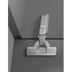 Häfele Duomatic Push kophengsel med en åpning på 110 til grep-løs åpning. Dette hengselet er særlig godt egnet for dører med push-to-open.