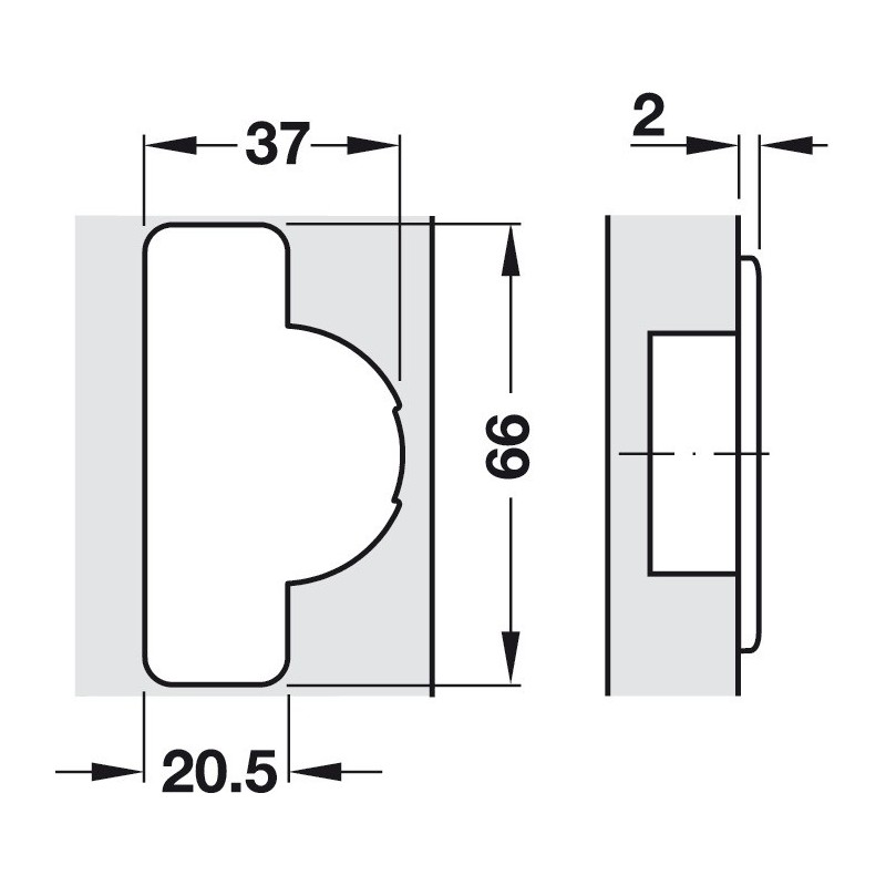 - Dybdejustering med Duomatic A montasjebracket: +2,8 mm