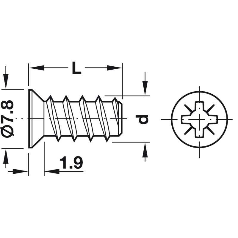 Denne euro skruen passer til et forboret hull på 5 mm.