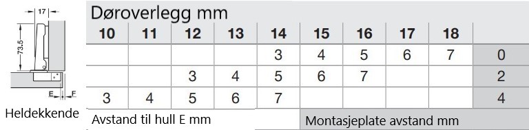 Du kan lese mye mer om hvordan du finner riktig type hengsel og hvordan du finner avstanden på montasjeplaten din her: Veiledning i hengsler