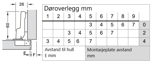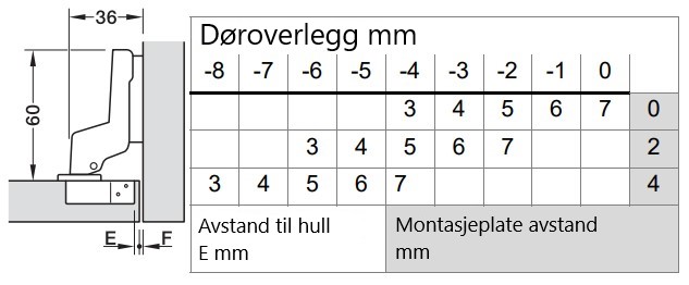 Du kan lese mye mer om hvordan du finner den riktige typen hengsel og hvordan du finner avstanden på din monteringsplate her: Veiledning i hengsler