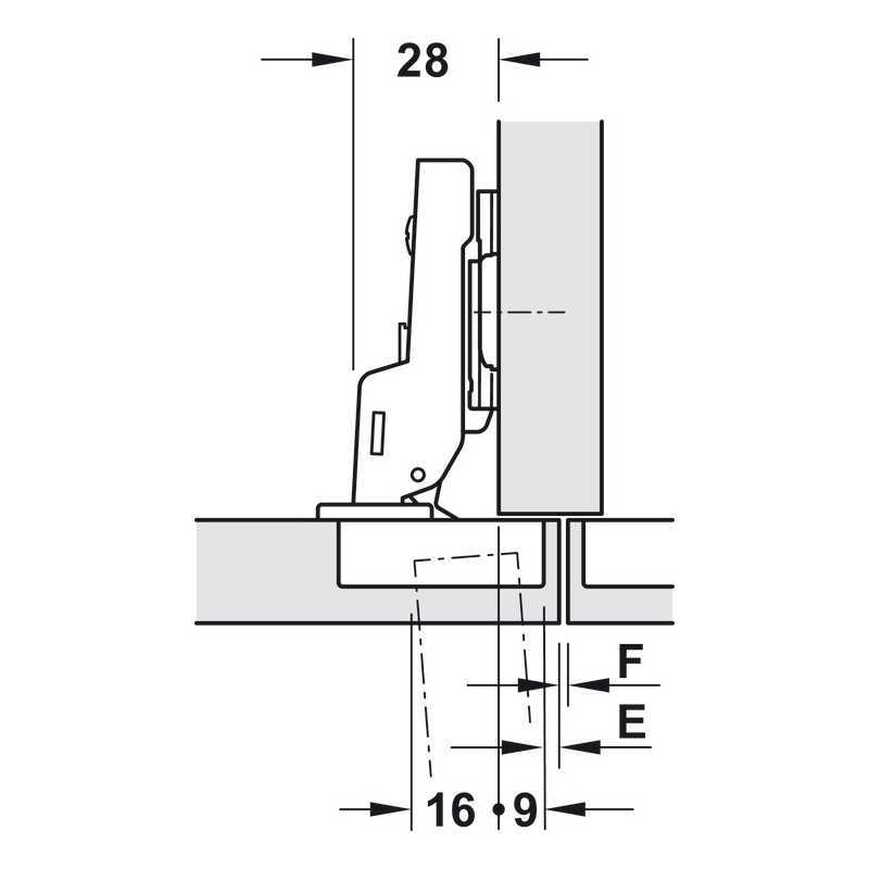 Häfele Metalla 310 A/SM 95 kopphengsel med soft-close og en åpningvinkel på 95°.