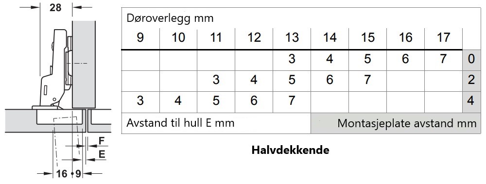 Velg hengseltype lenger nede på siden.| Hengseltype | Montasjeplate system |