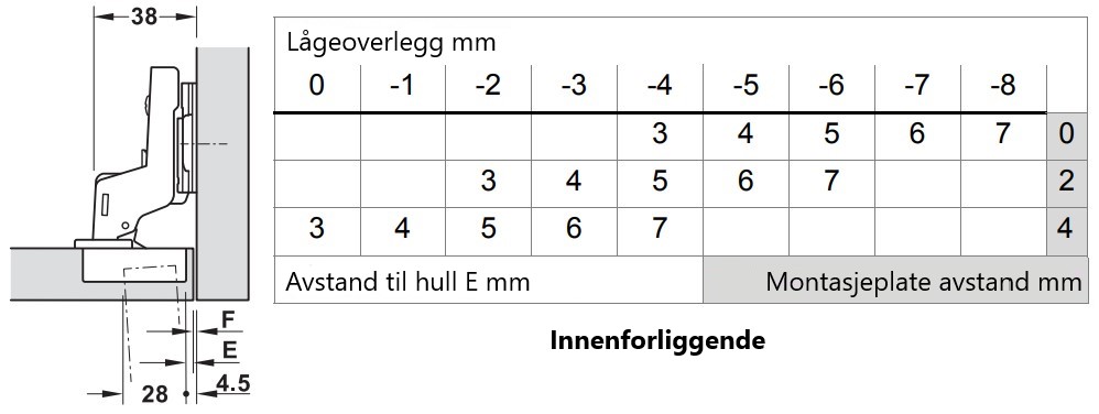 Du kan lese mye mer om hvordan du finner den riktige typen hengsel og hvordan du finner avstanden på din montasjeplate her: Veiledning i hengsler