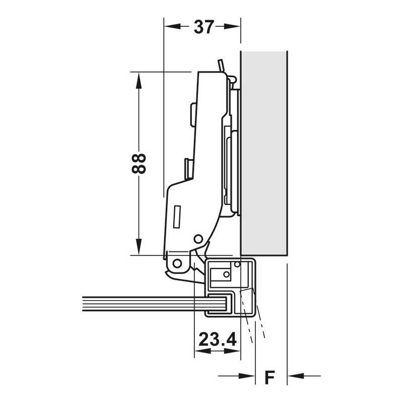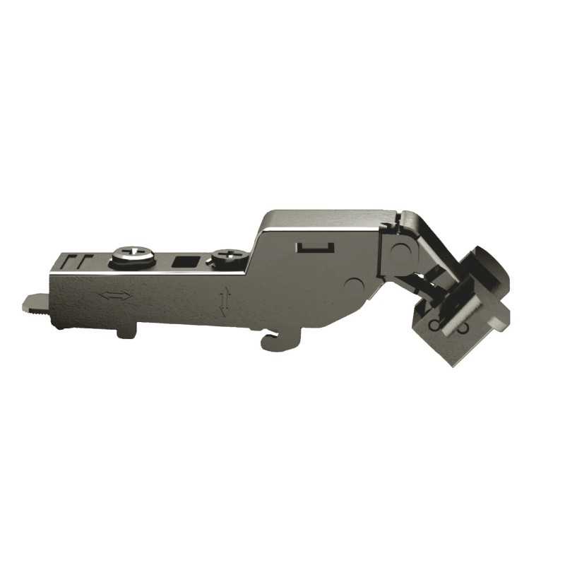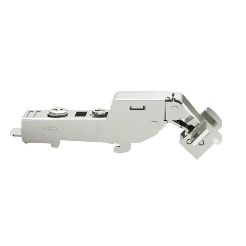 Häfele Metalla 310 A/SM 110° hengsel til skapdører med aluminiumsrammer til glass. Har soft-close lukkedemping.