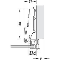 Häfele Metalla 310 A/SM 110° hengsel til skapdører med aluminiumsrammer for glass.