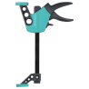 Den innovative pumpemekanismen tillater opptil 90 kg klemmetrykk som raskt kan tilføres og løsnes igjen med bare én hånd. Håndtaket er ergonomisk og mykt, noe som gjør arbeidsprosessen behagelig, og den har innfelte flater for fingrene.