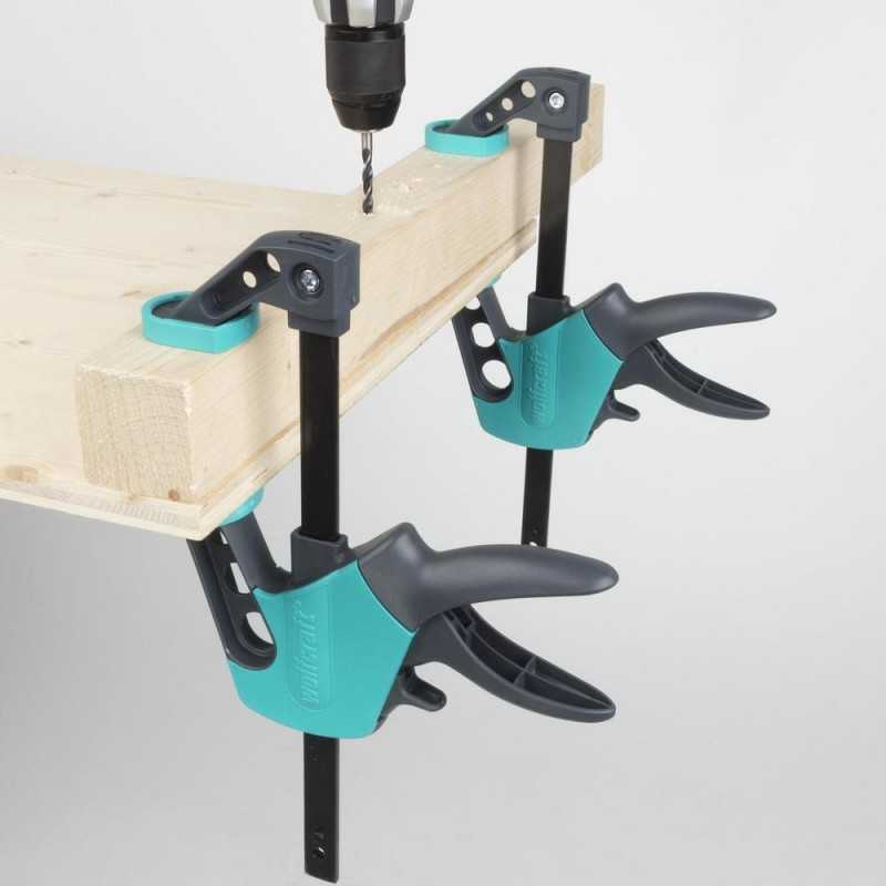 Denne kompakte utgaven av Wolfcrafts hurtigtvinge er ideell for de finere detaljene i prosjektet eller der hvor det skal repareres eller limes.