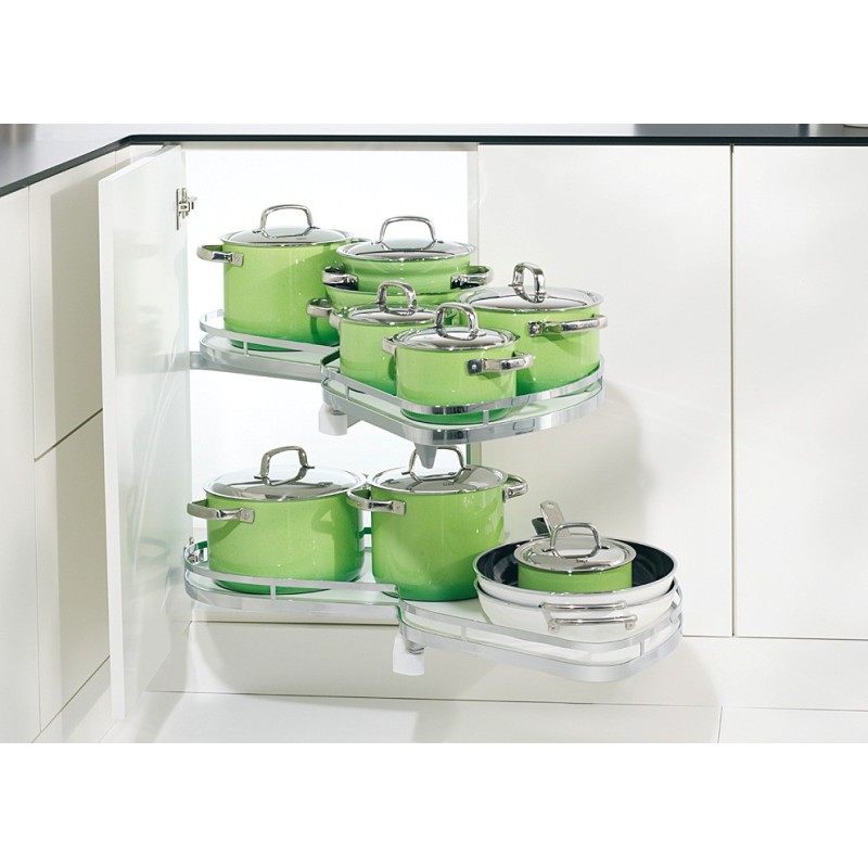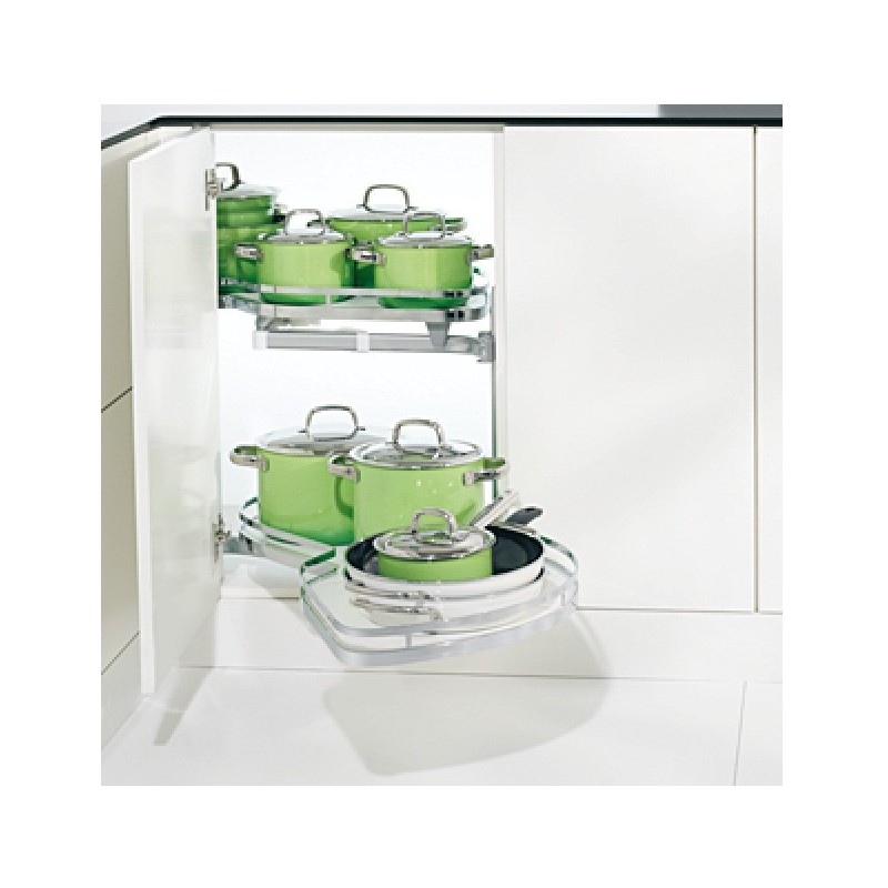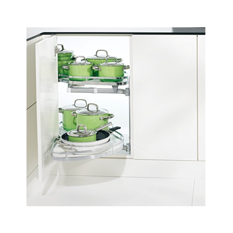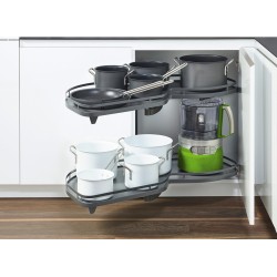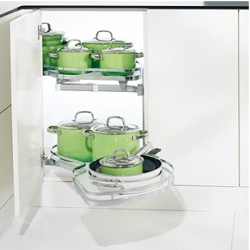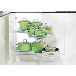 Systemet er perfekt for bruk i hjørneskapet hvor plassen er vanskelig å utnytte, da denne modellen kan trekkes helt ut av skapet.