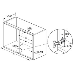 Du kan se målene A, B og C i den tekniske tegningen i bildene.