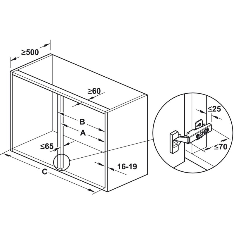 - Lågeåpningsvinkel: min. 85º