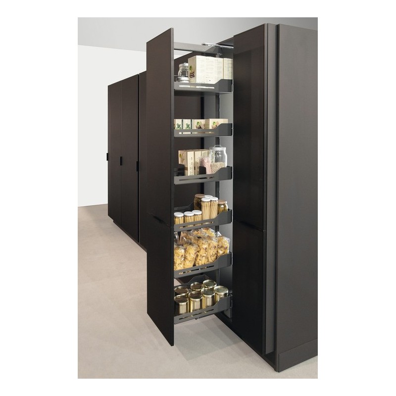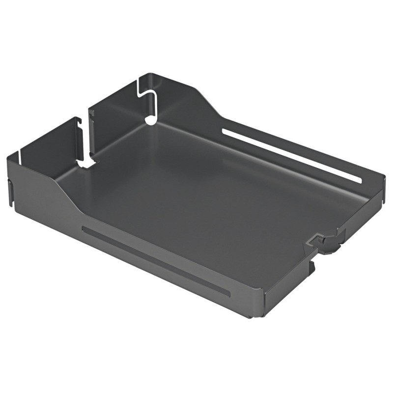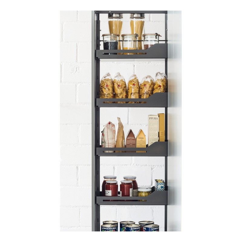 5 oppbevaringshyller til Kesseböhmer høyskap-frontuttrekk. Prisen er for 5 hyller. Hyllene er i stål og har en antrasittfarget overflate.