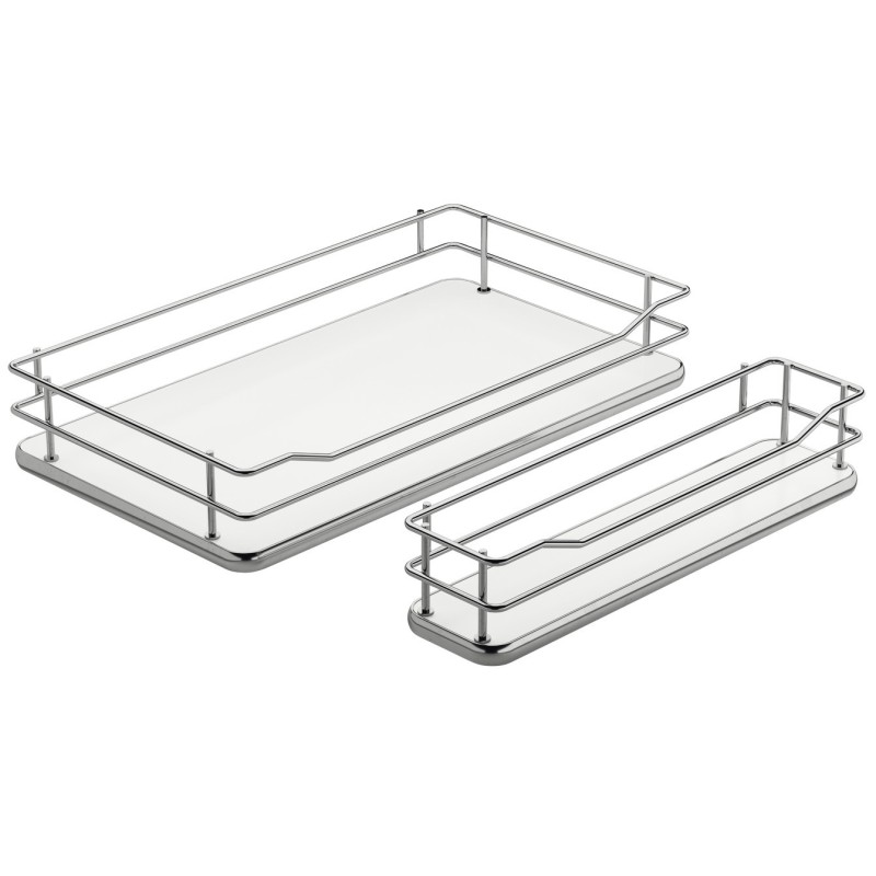 Dette settet kommer med en innvendig og utvendig hyllkurv, som passer som erstatning for de eksisterende kurvene i høyskapets utdrag.