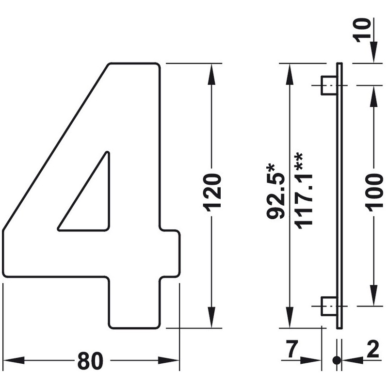Bokstavene a + c har en høyde på 92,5 mm, og bokstavene b + d har en høyde på 117,1 mm. Bokstavene er produsert i et enkelt og tidløst design.