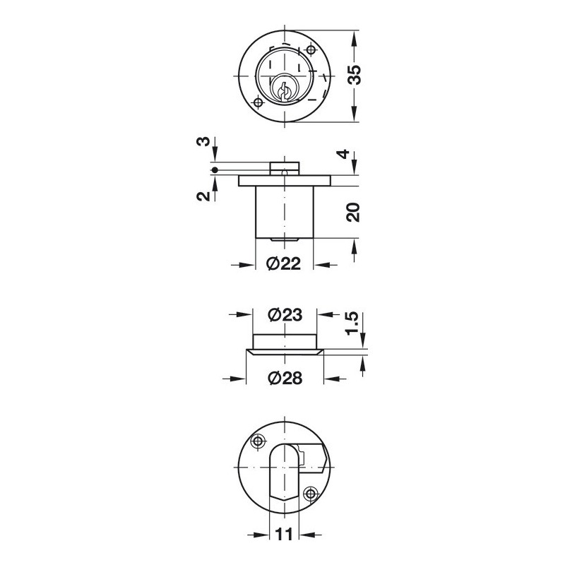 Häfele Rondell freseklaplås med låsetvang. Kvalitetslås i zinklegering og messing. Har 5 stiftholdere, som gir den et godt sikkerhetsnivå.