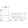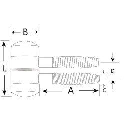 Mål (B x L) Tap lengde (A) Tap diameter (C) Tap, afstand fra midt til midt (D)