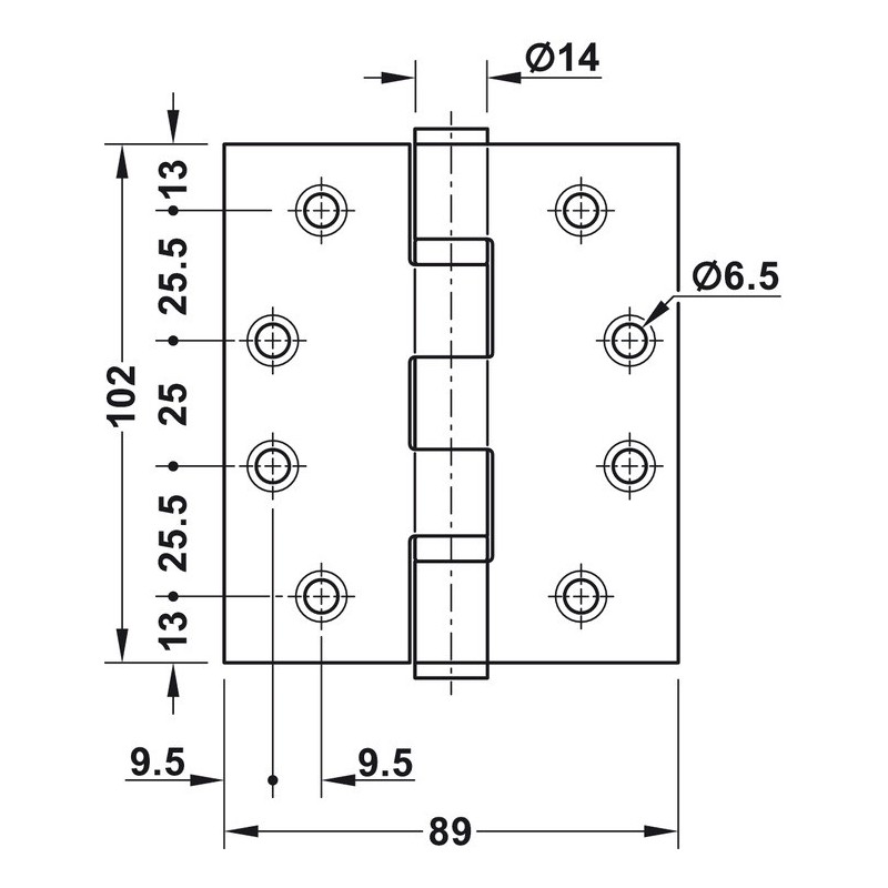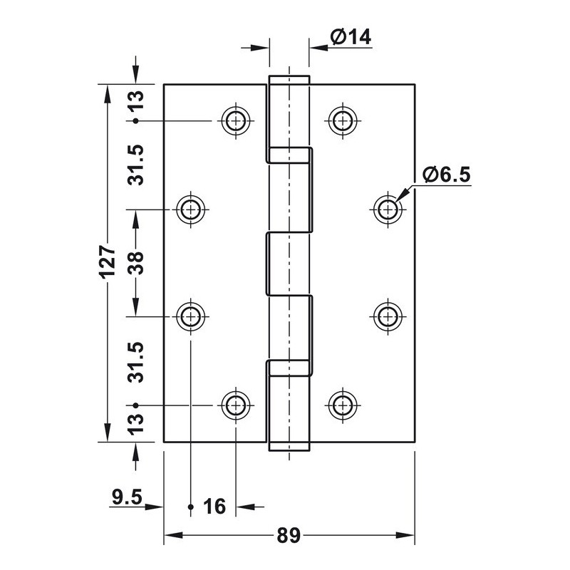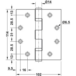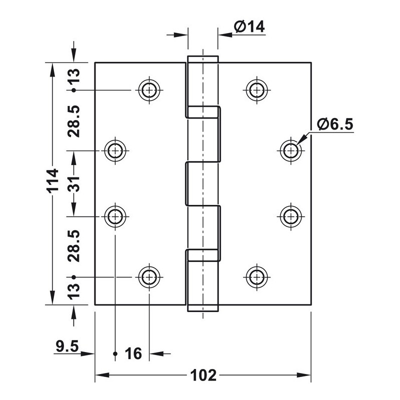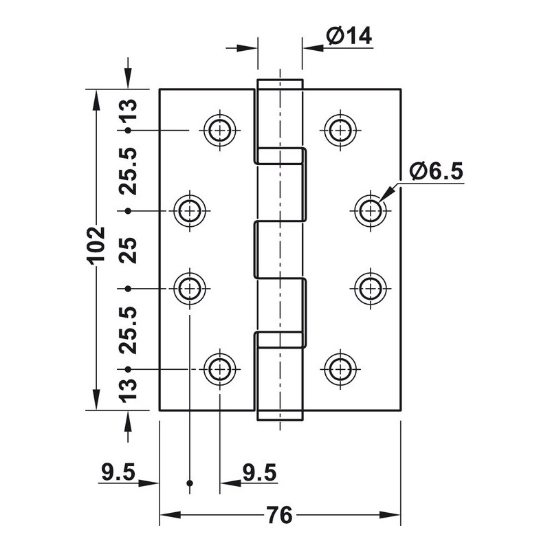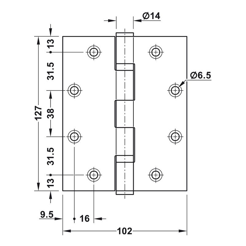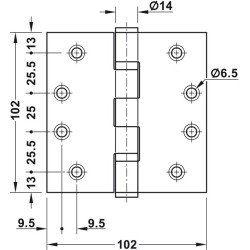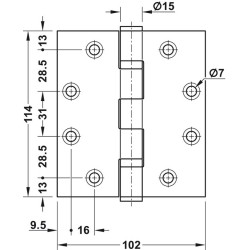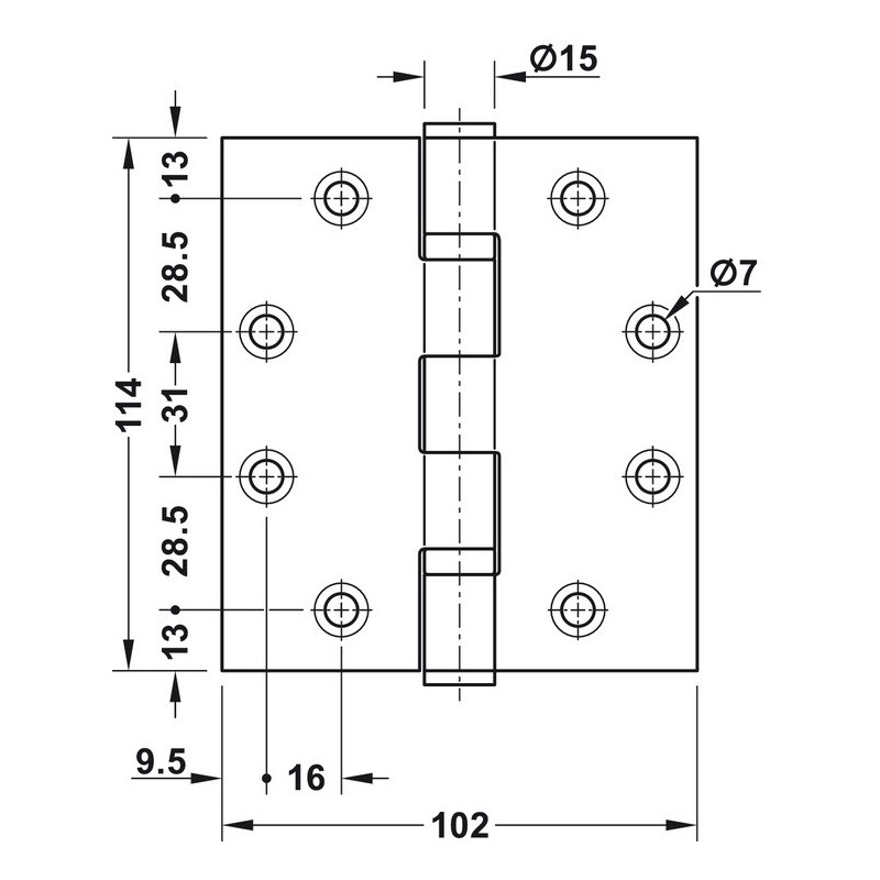 - Hengslet er egnet for branndører.