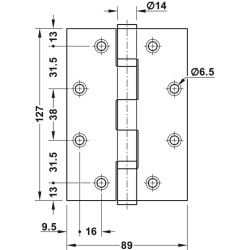 | Jeg | 127 mm | 89 mm | DHB 8222 | Rustfritt stål kvalitet 304 | ||