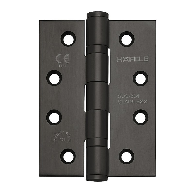 Simpelt firkantet kanthengsel i rustfritt stål med matt svart overflate.