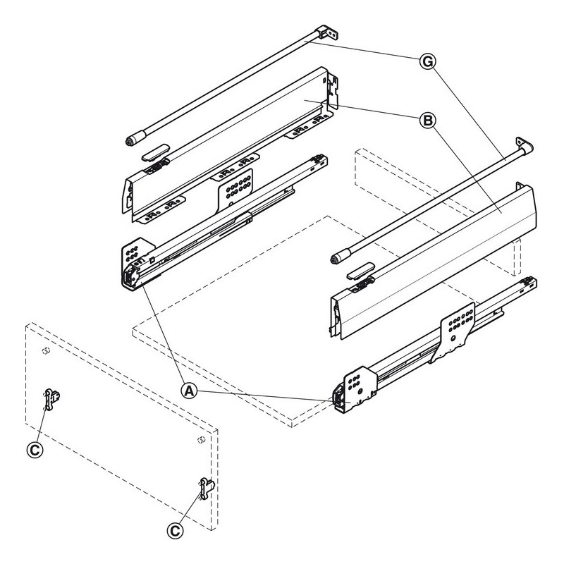 OBS: Vær oppmerksom på at skapet som uttrekket skal monteres i, må være litt dypere enn lengden på det uttrekket du velger. Det må være litt luft til uttrekket.